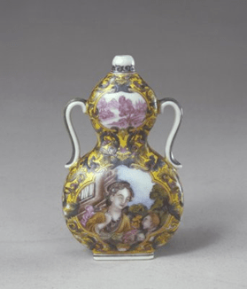 宫廷收藏中,宋以来专供内廷使用的名窑出品自不必提,亦有大量的民窑与外销瓷收藏,还有历代宫廷借鉴海外风格的特制瓷器。瓷器虽然是中国最早烧造,然而其釉彩之变化花样,既可以源于本土,亦可采自西洋。所以外销定制瓷器上可以专为客户描出家徽纹章,宫廷定制瓷器上也可为皇帝描摹衣着华丽的西洋女子。本土的青瓷尽力模仿云破之处的雨过天青,进口的苏青釉料最终也成就了元明青花。洋彩、珐琅彩最终成为清代官窑的重要门类,而制瓷要诀也因为耶稣会士殷洪绪的“偷师”传到欧洲,最终使欧洲的名瓷如利摩日、迈森等工艺突飞猛进。