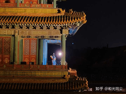 2019年上元夜,如织的观众从故宫东城墙走过,他们近旁的畅音阁也亮上了灯,京剧演员与观众天涯此时,“冰轮离海岛,乾坤分外明”。